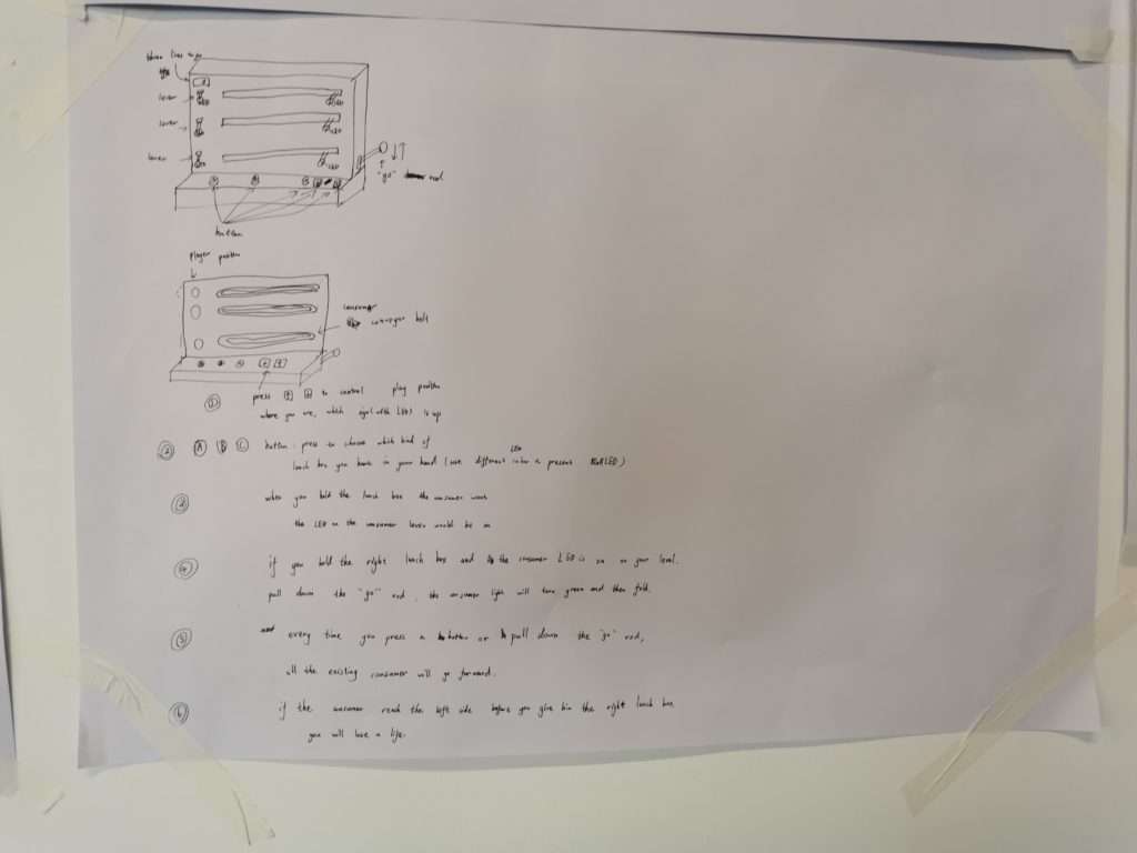 Each student would like to have only one kind of meal. For some reasons, the students will not tell you which kind of meal they want, but will only react to your actions. You would pick up a boxed meal(left side LED is lighted), and ask if anyone wants to have it. If a student is given correct meal, he/she will leave happily(indent into the game box).